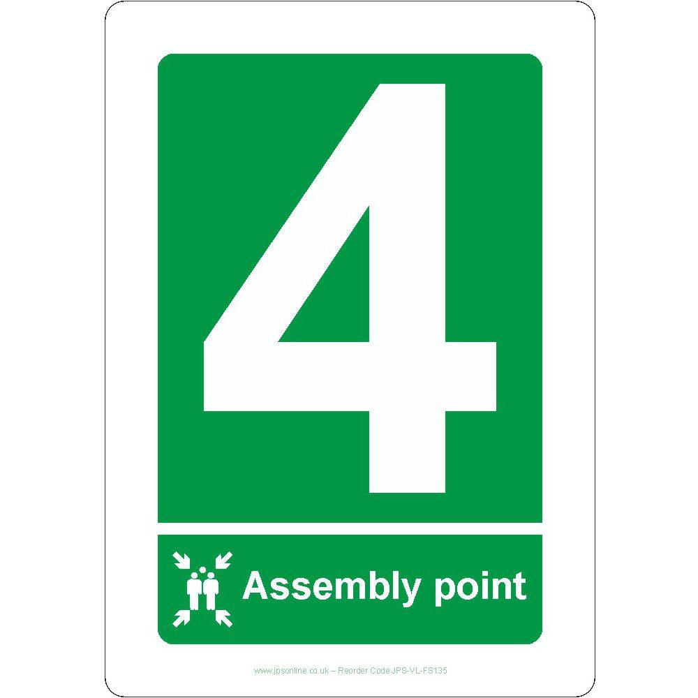 Assembly Point '4' Sign - A5 148mm x 210mm / 1mm Rigid Plastic / 1 is backordered and will ship as soon as it is back in stock.