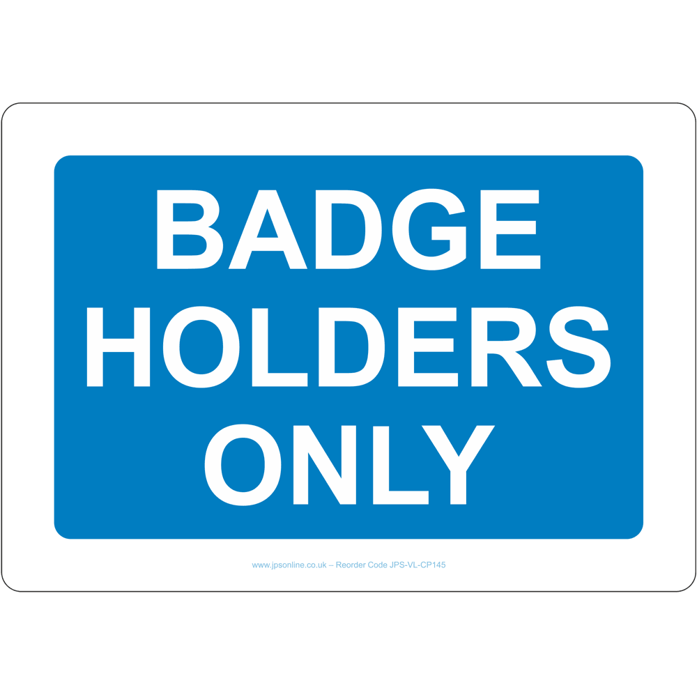 Badge Holders Only Sign - A5 148mm x 210mm / 1mm Rigid Plastic / 1 is backordered and will ship as soon as it is back in stock.