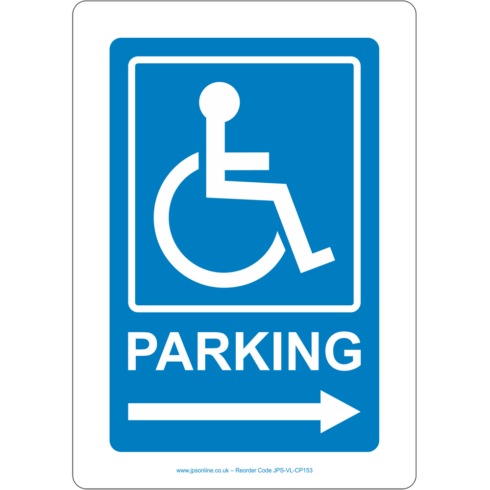 Disabled Parking Arrow Right Sign - A5 148mm x 210mm / 1mm Rigid Plastic / 1 is backordered and will ship as soon as it is back in stock.