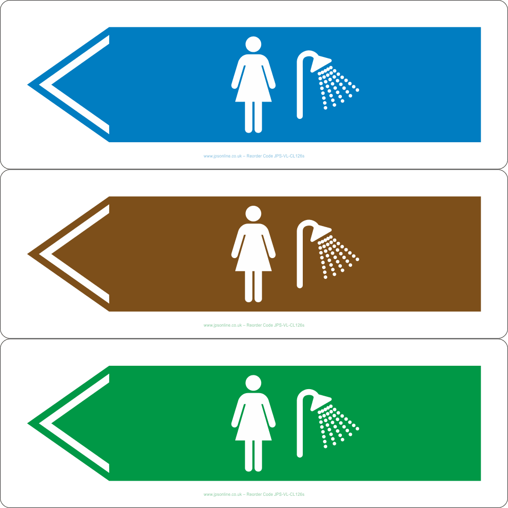 Female Showers (Left Arrow) Sign - 300mm x 100mm / 1mm Rigid Plastic / 1 is backordered and will ship as soon as it is back in stock.