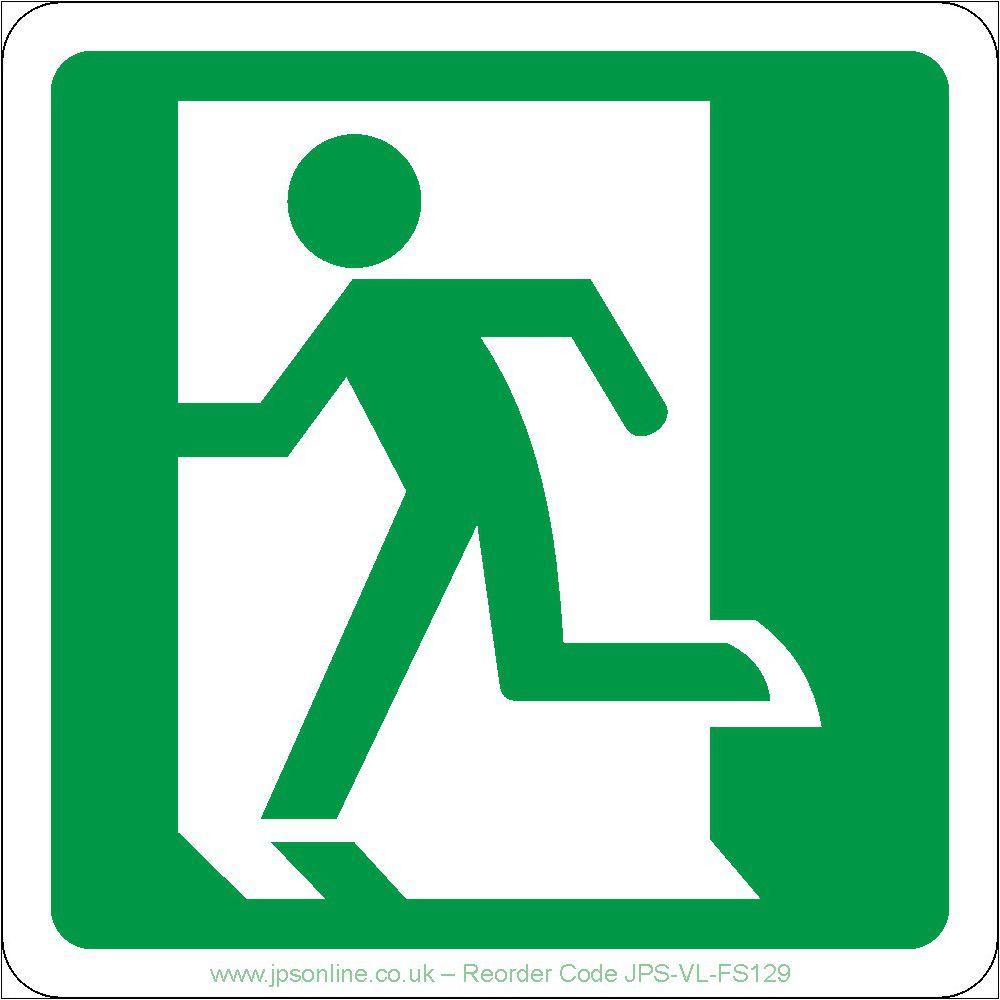 Fire Exit with Graphic Left Sign - 100mm x 100mm / 1mm Rigid Plastic / 1 is backordered and will ship as soon as it is back in stock.