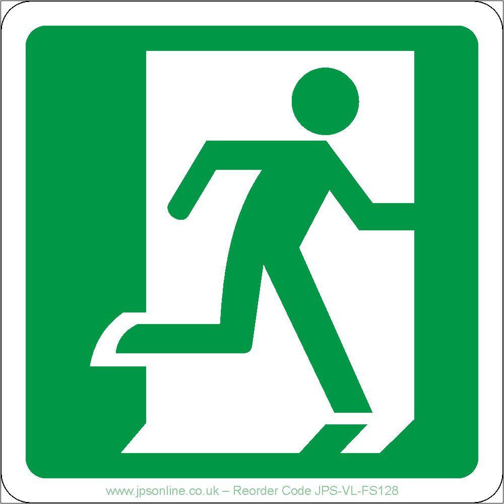 Fire Exit with Graphic Right Sign - 100mm x 100mm / 1mm Rigid Plastic / 1 is backordered and will ship as soon as it is back in stock.
