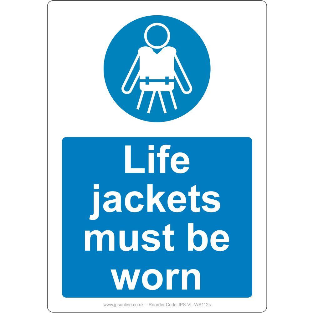Life Jackets Must Be Worn Sign - A5 148mm x 210mm / 1mm Rigid Plastic / 1 is backordered and will ship as soon as it is back in stock.