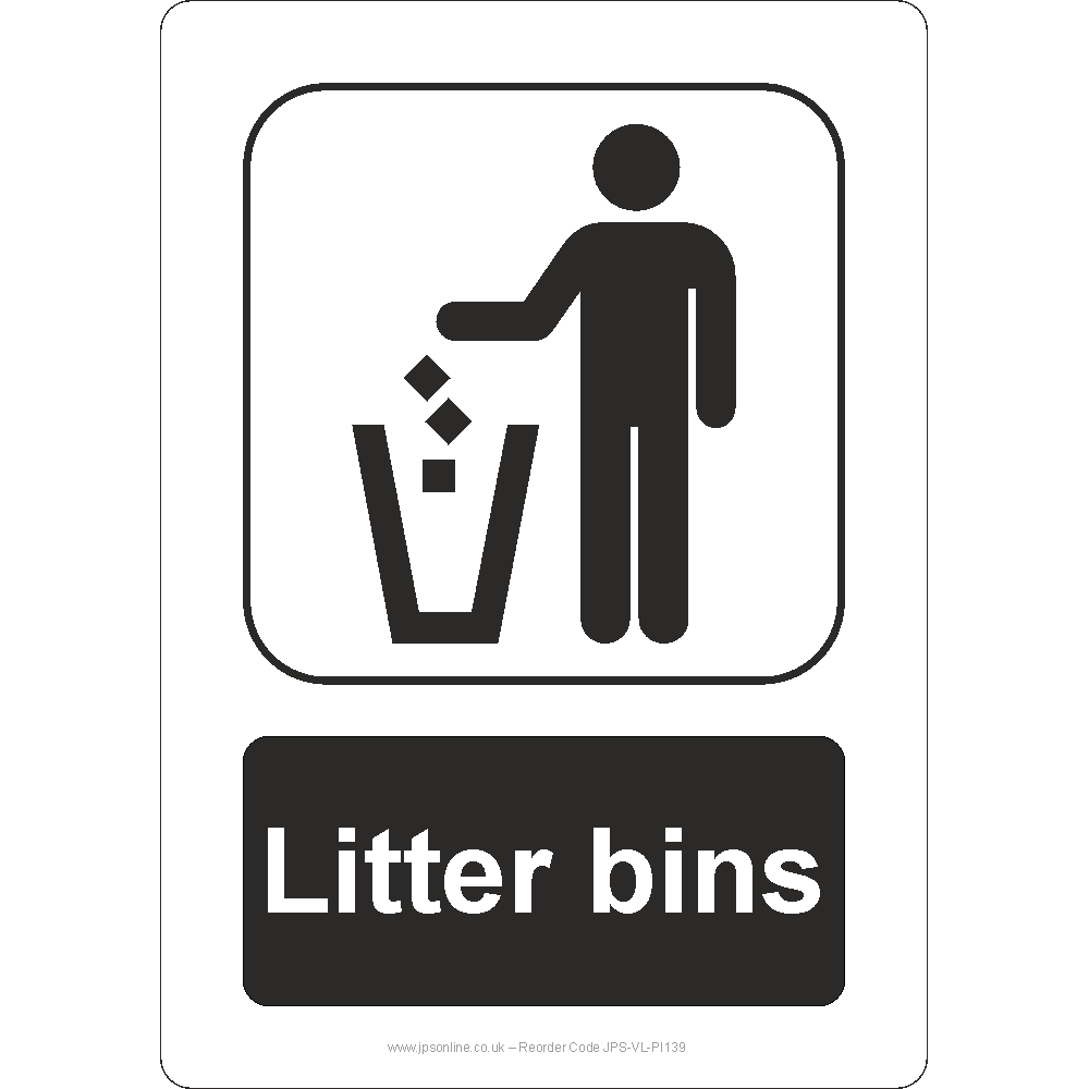Litter Bins Sign - A5 148mm x 210mm / 1mm Rigid Plastic / 1 is backordered and will ship as soon as it is back in stock.