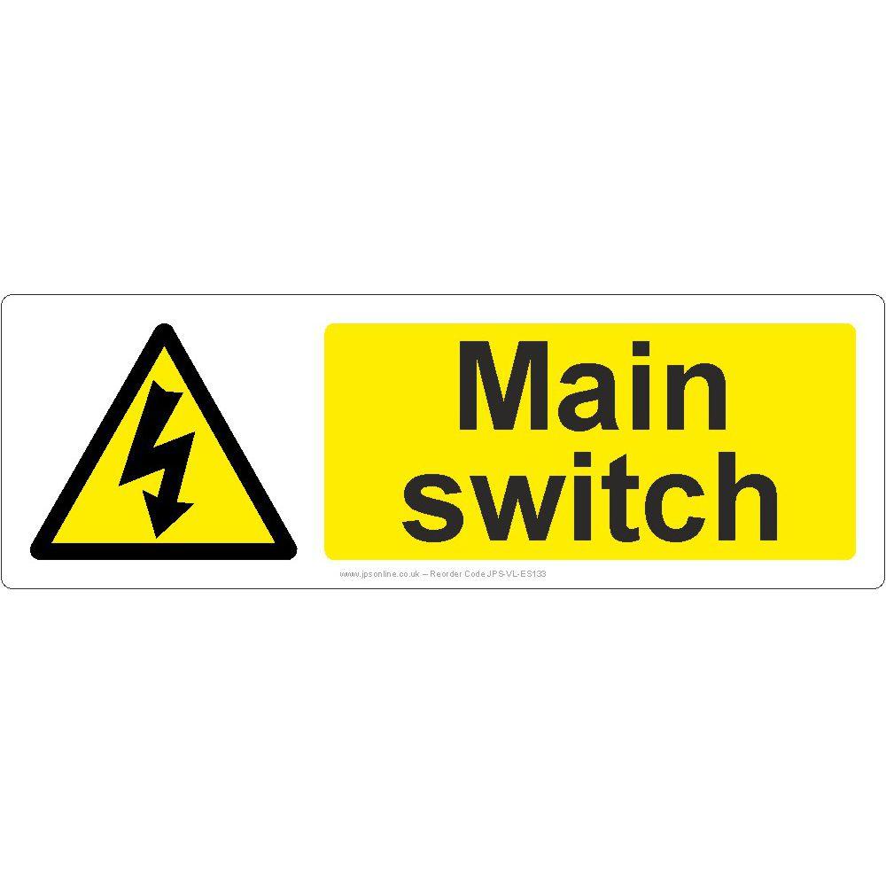 Main Switch Sign - 300mm x 100mm / 1mm Rigid Plastic / 1 is backordered and will ship as soon as it is back in stock.