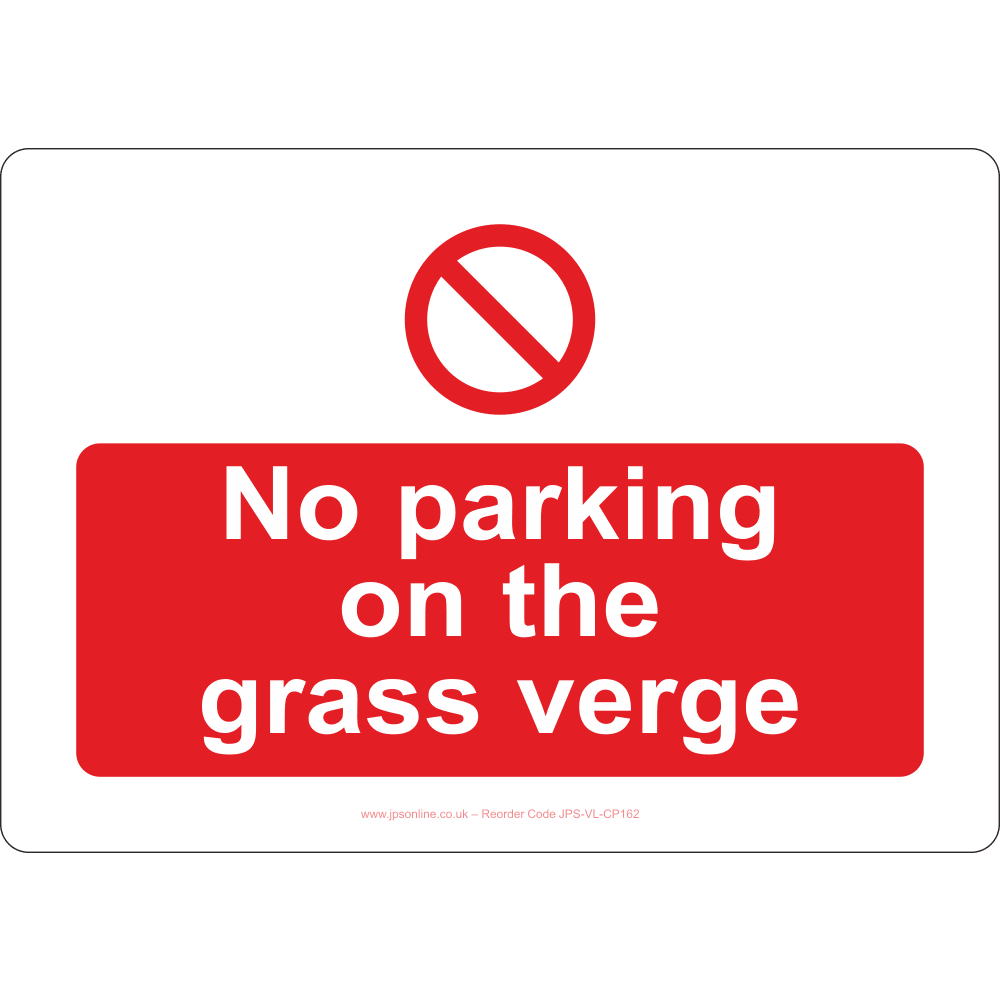 No parking on the grass verge sign - A5 148mm x 210mm / 1mm Rigid Plastic / 1 is backordered and will ship as soon as it is back in stock.