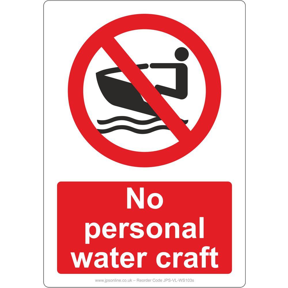 No Personal Water Craft Sign - A5 148mm x 210mm / 1mm Rigid Plastic / 1 is backordered and will ship as soon as it is back in stock.