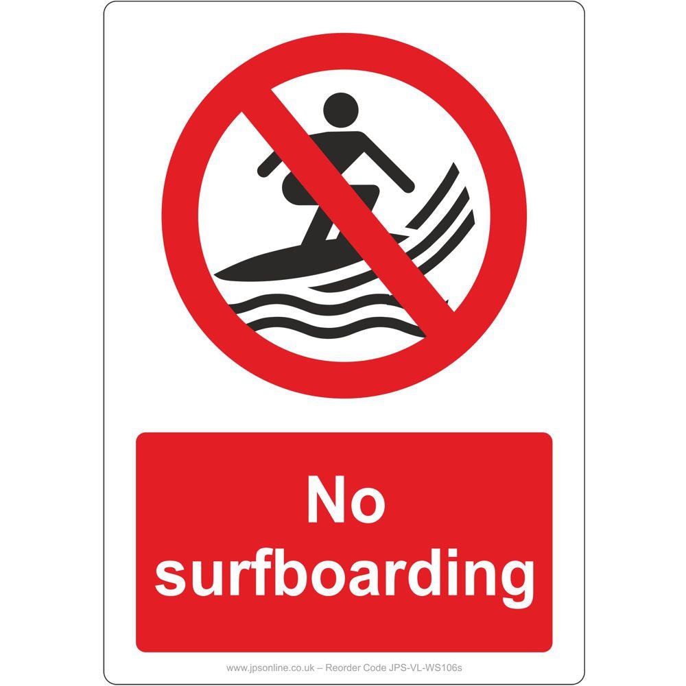 No Surfboarding Sign - A5 148mm x 210mm / 1mm Rigid Plastic / 1 is backordered and will ship as soon as it is back in stock.