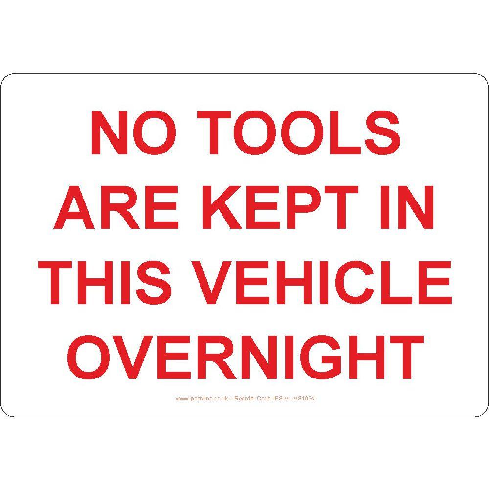 No Tools Are Kept In This Vehicle Overnight Sign - A5 148mm x 210mm / 1mm Rigid Plastic / 1 is backordered and will ship as soon as it is back in stock.