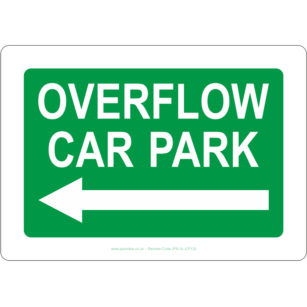 Overflow Car Park Arrow Left Sign - A5 148mm x 210mm / 1mm Rigid Plastic / 1 is backordered and will ship as soon as it is back in stock.