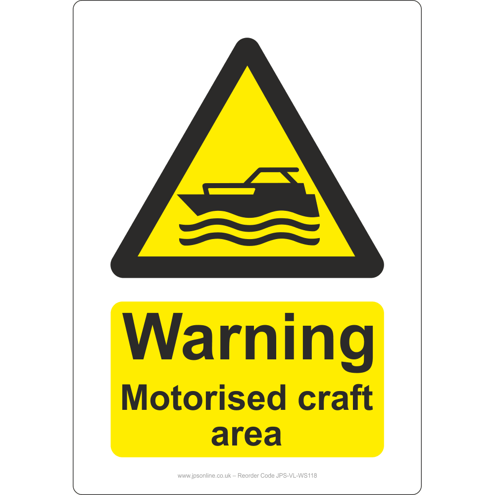 Warning Motorised Craft Area Sign - A5 148mm x 210mm / 1mm Rigid Plastic / 1 is backordered and will ship as soon as it is back in stock.