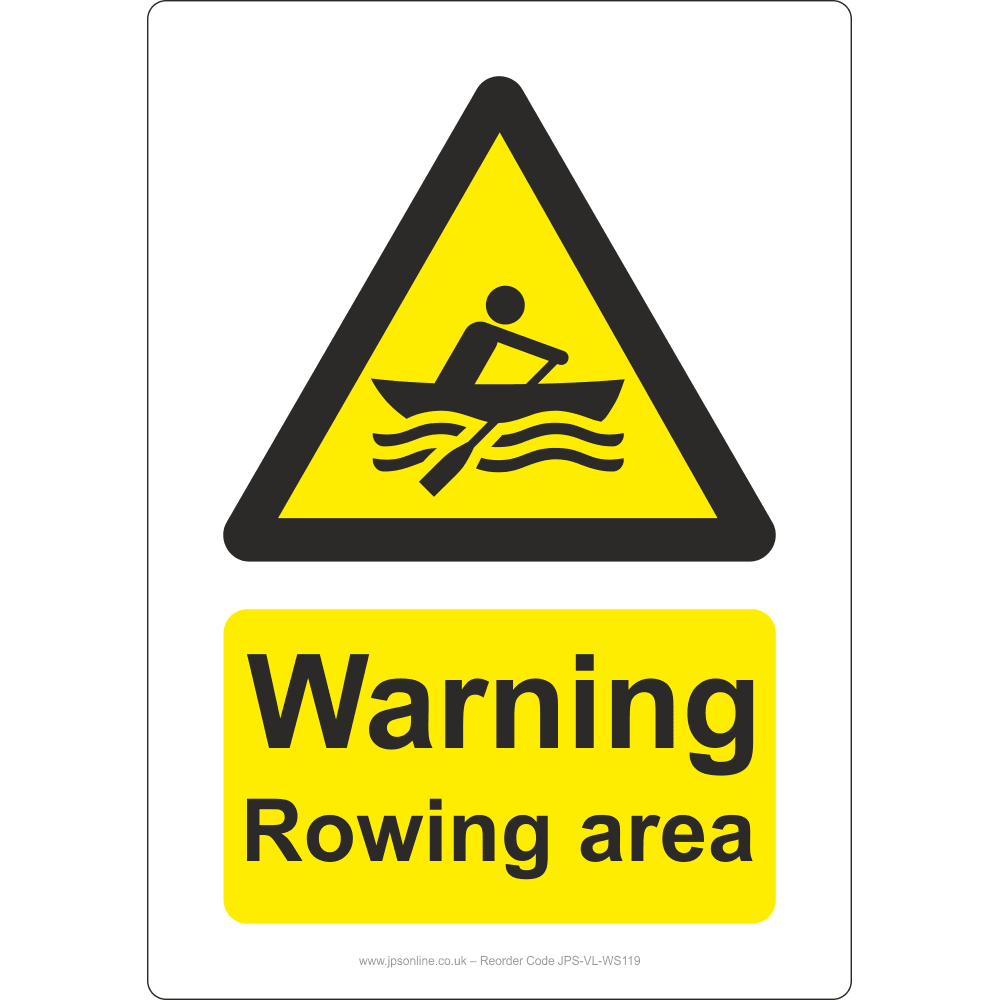 Warning Rowing Area Sign - A5 148mm x 210mm / 1mm Rigid Plastic / 1 is backordered and will ship as soon as it is back in stock.