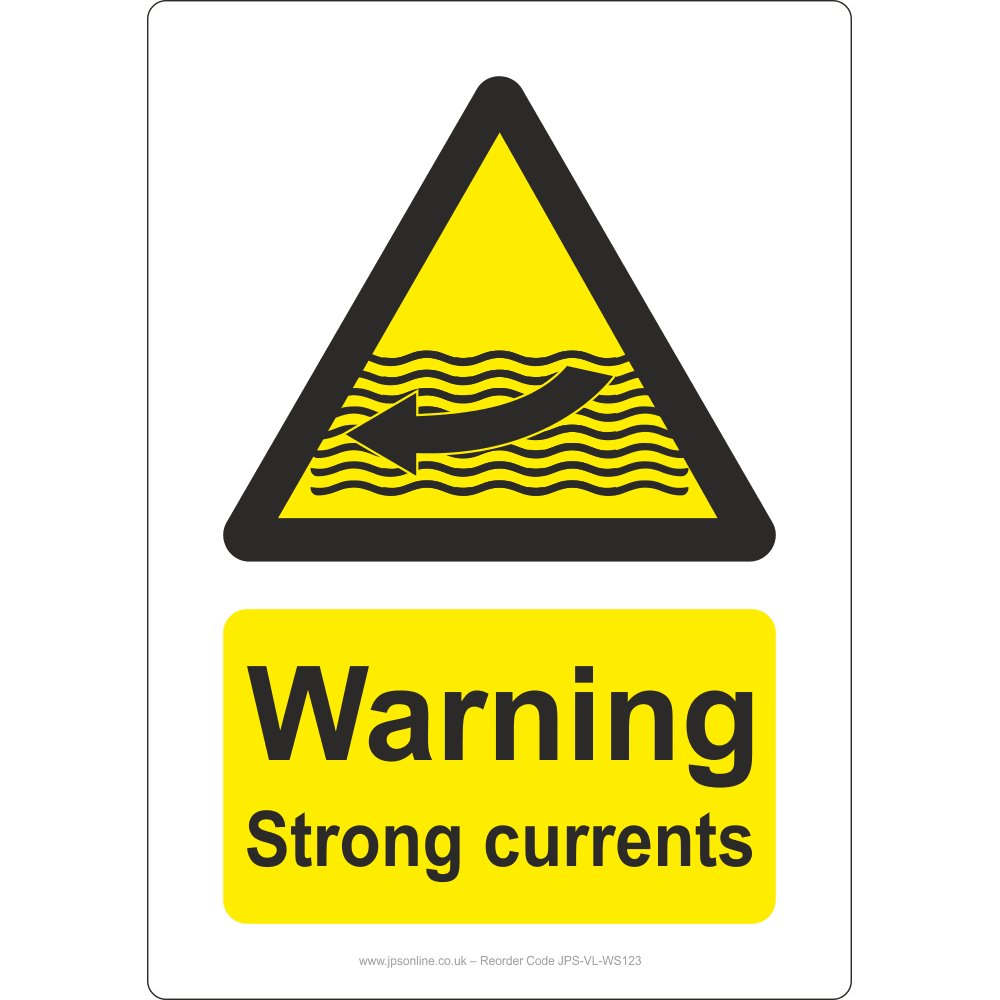 Warning Strong Currents Sign - A5 148mm x 210mm / 1mm Rigid Plastic / 1 is backordered and will ship as soon as it is back in stock.