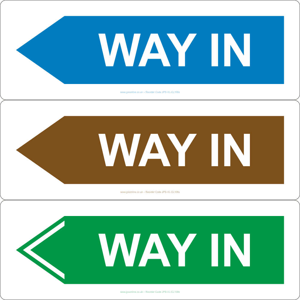 Way In (Left Arrow) Sign - 300mm x 100mm / 1mm Rigid Plastic / 1 is backordered and will ship as soon as it is back in stock.