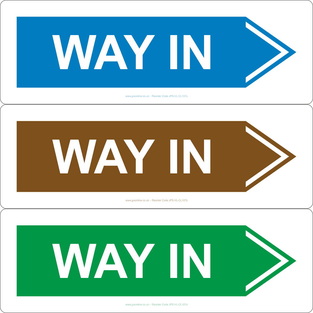 Way In (Right Arrow) Sign - 300mm x 100mm / 1mm Rigid Plastic / 1 is backordered and will ship as soon as it is back in stock.